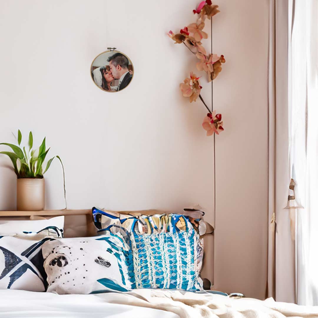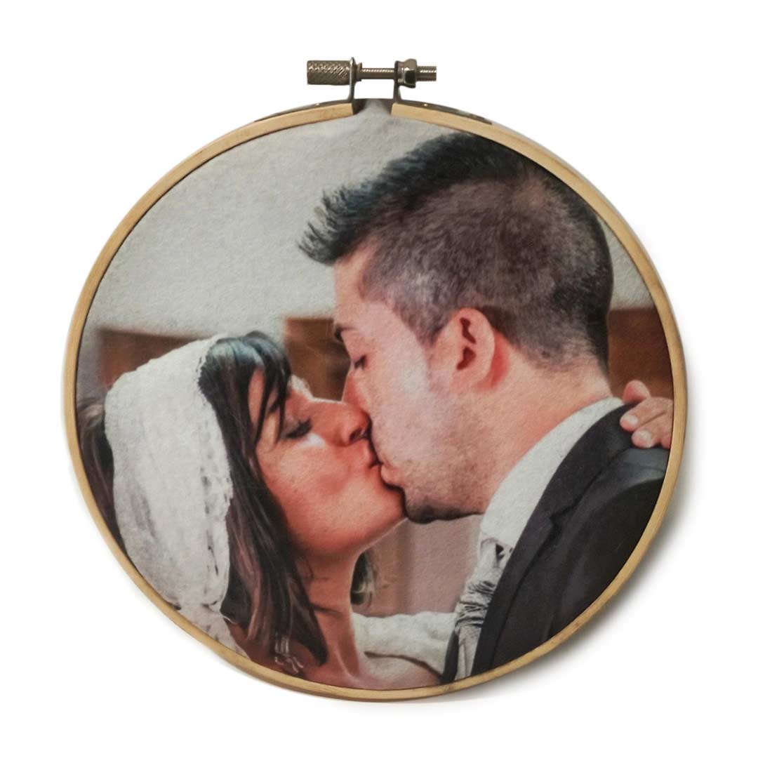 Cada bastidor circular de madera ofrece un toque rústico y elegante, perfecto para destacar en cualquier pared de tu hogar. Personaliza tu bastidor con una foto a elección e inmortaliza esos instantes inolvidables de viajes, celebraciones, o momentos cotidianos llenos de significado.