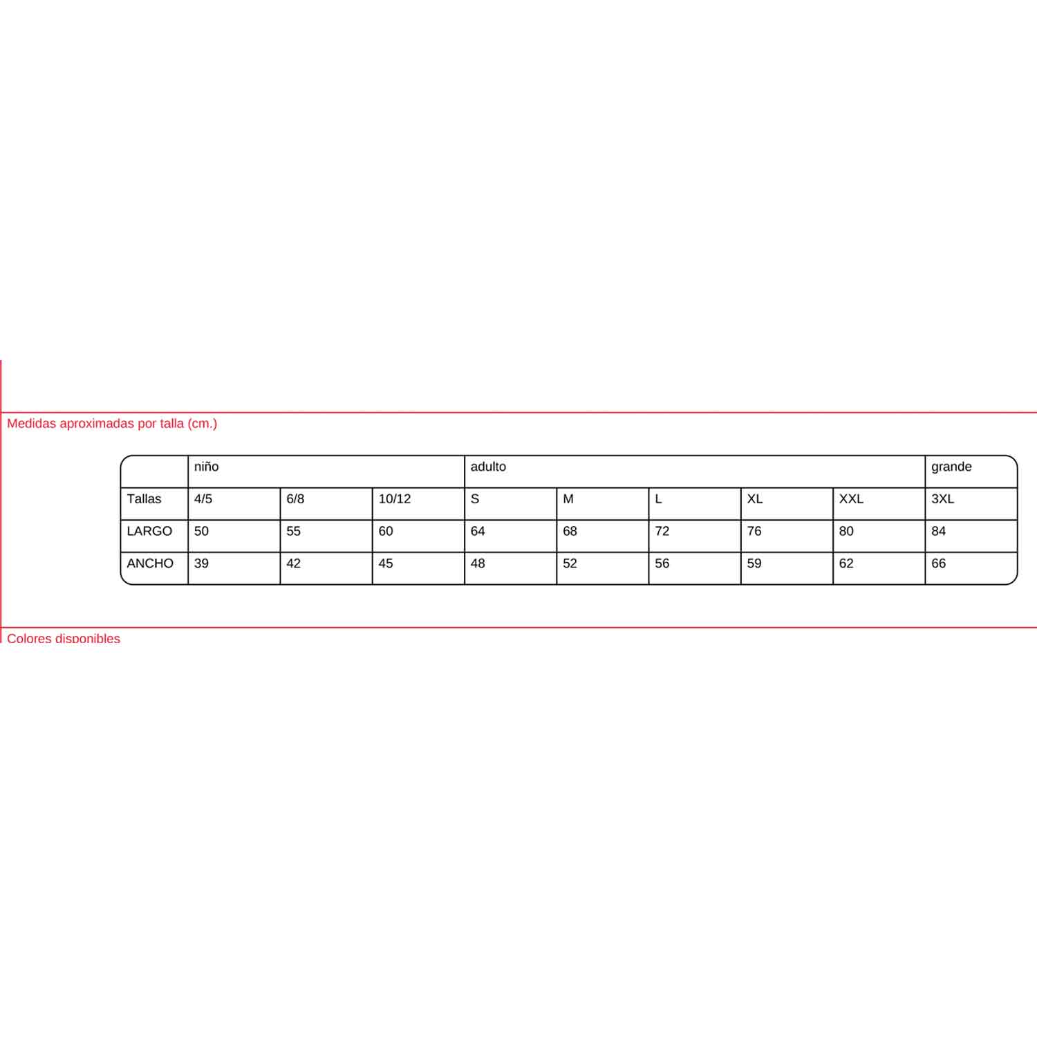 | Talla camiseta infantil | 4/5 años, 6/8 años, 10/12 años |