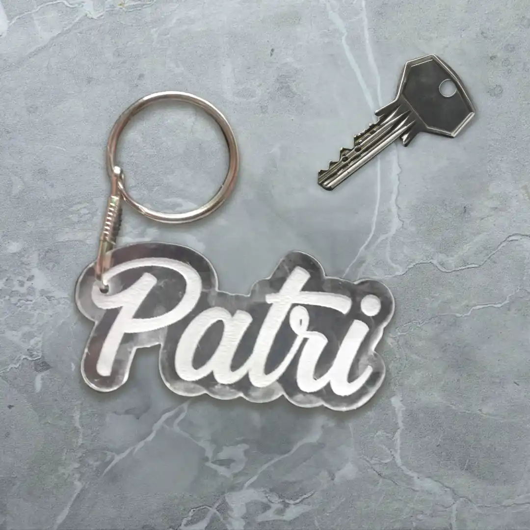 Llavero de metacrilato personalizado con tu nombre, combinando estilo, durabilidad y un toque personal único. Ideal para regalar o para uso diario.