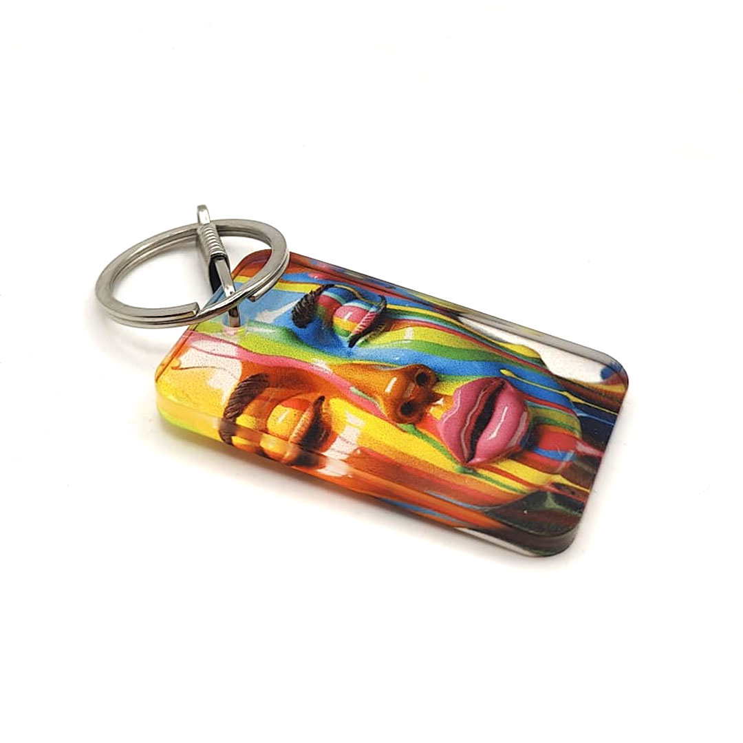 Llavero de metacrilato transparente para sublimar. Tamaño estándar 55×35 mm y 5 mm de grosor, con posibilidad de formas personalizadas. Calidad excepcional para acabados vibrantes.