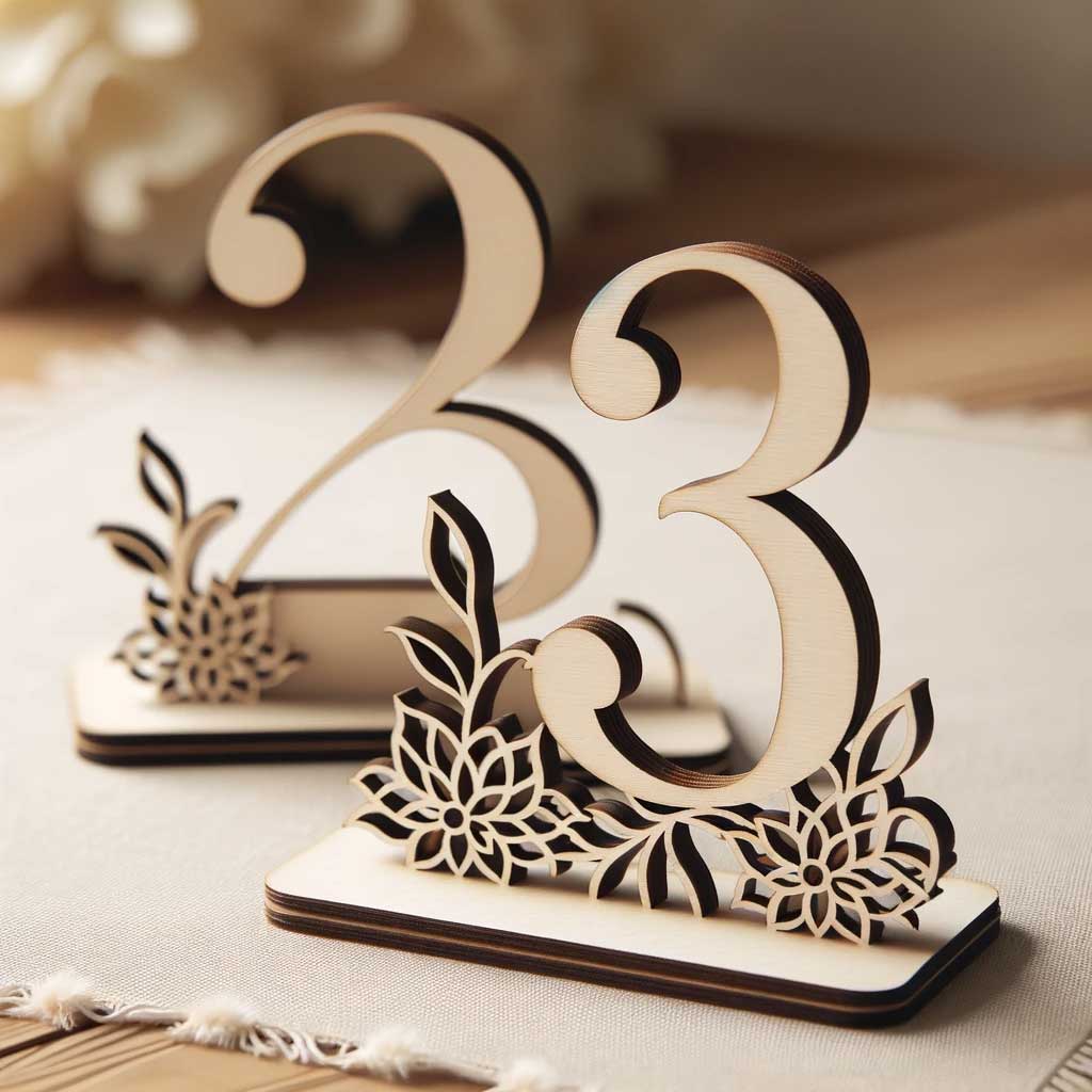 Nuestros meseros en madera para boda están meticulosamente diseñados para añadir un toque de sofisticación y elegancia a cualquier celebración nupcial. Cada número está cuidadosamente cortado en madera DM, una elección popular por su durabilidad y acabado estético. Estos meseros no solo son prácticos, ayudando a tus invitados a encontrar sus asientos fácilmente, sino que también sirven como una hermosa pieza decorativa que complementa la temática de tu boda. Su diseño sencillo pero elegante los hace versátiles para adaptarse a una variedad de estilos de decoración, desde lo rústico hasta lo contemporáneo.